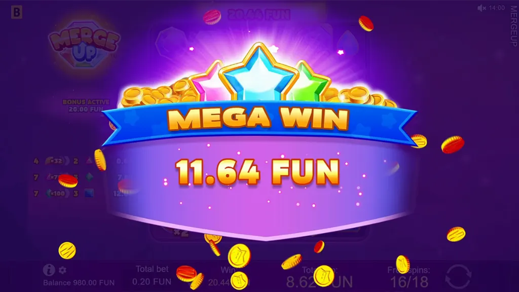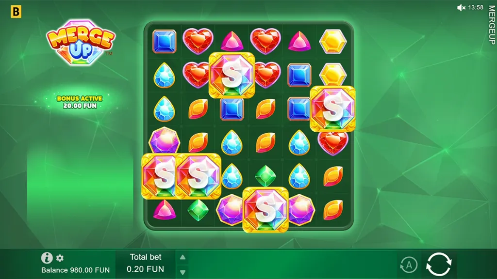 Merge Up features an innovative Merge Up system, where players aim to create clusters of four or more identical symbols.