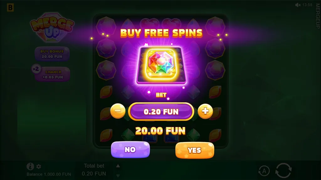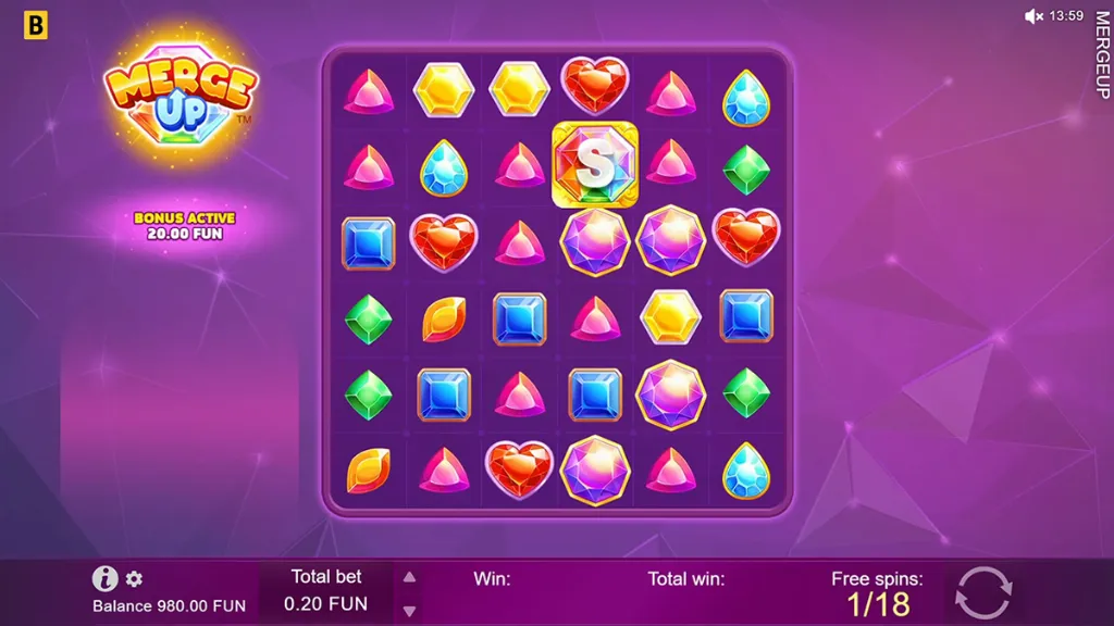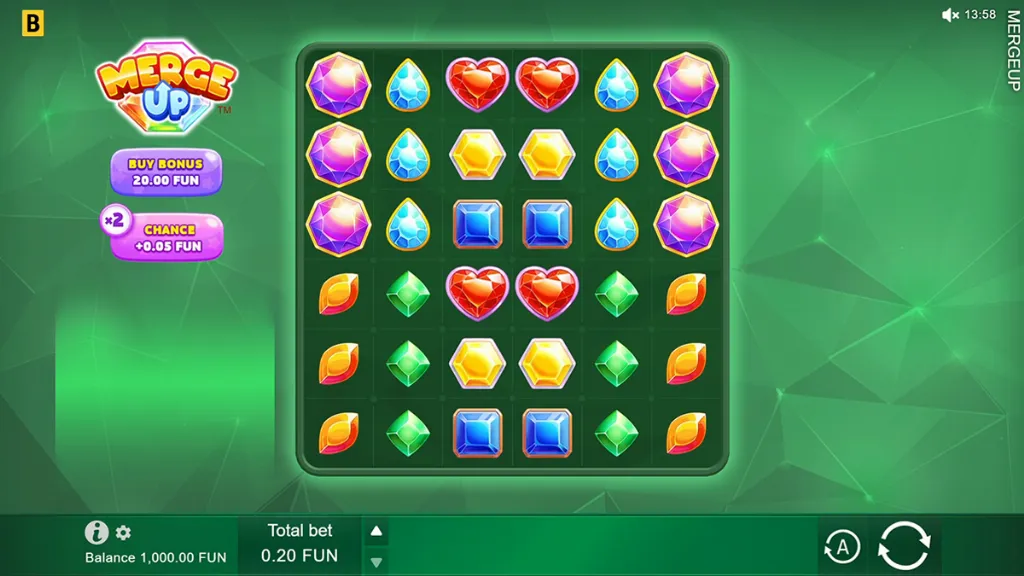 Merge Up is an innovative slot game by Bgaming that combines Cluster Pays mechanics with the allure of magic precious stones.